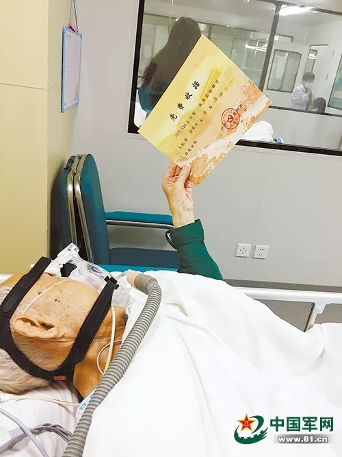 由于患上脑中风,那一天,99岁高龄的苏老坐在轮椅上,用左手托起右臂面对党旗庄严宣誓。