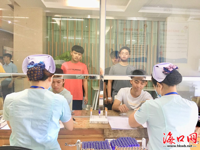 据了解,2019年全国共有14所军队院校在海南招生,共计179个名额,其中男生170 名,女生9名。7月2日上午8时,海南考生陆续来到九二八医院参加军检,此次军检分为面试和体检,共分了7个面试组、1个复议组、1个考生权益审核组和若干个体检科室。面试工作人员由中央军委训练管理部派遣的军校专家和教授组成,主要考察考生的报考动机、形象气质、逻辑思维、语言表达、反应能力等方面的基本素质。体格检查主要检査考生外科、内科、眼科、耳鼻咽喉科、口腔科、实验室检査(血常规、尿常规、粪便常规)、职业基本适应性检测、胸部、心电图、心脏超声、腹部超声、妇科等10多个项目。