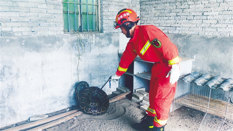 消防员捕蛇。