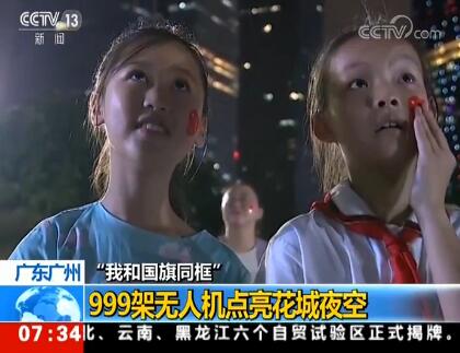 当晚,999架无人机组成的编队与“小蛮腰”及周边楼体灯光秀配合,共同点亮花城夜空。无人机编队变换出五星红旗、港珠澳大桥、“我爱你中国”等不同图案和文字。除了灯光秀,广州塔塔身还显示出“1949-2019”、“我们都是护旗手”、“我和国旗同框”等文字,配合无人机编队表演。现场观众纷纷举起手机,拍摄照片和视频,留下这难忘的一幕。