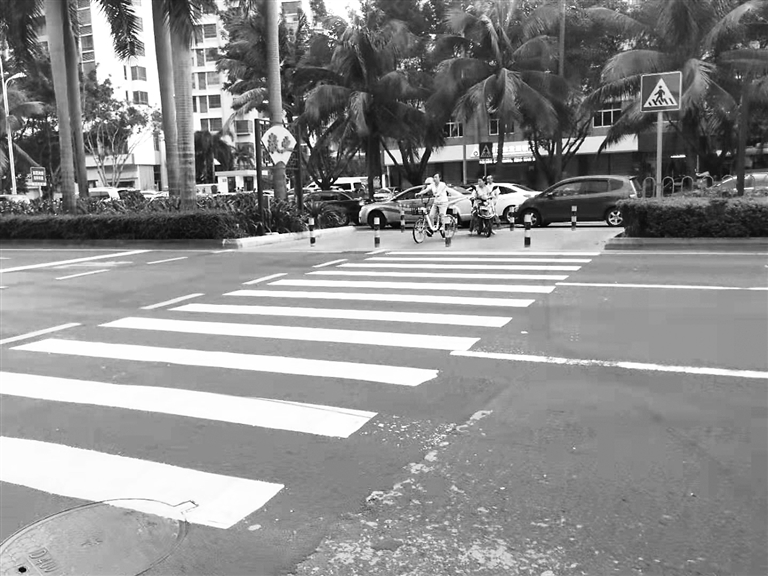 “广集酒家前的那个斑马线很特殊,旁边就是一个双掉头口,红城湖路上双向车辆都在这里掉头,加上斑马线南侧就是一个公交站,人流、车流和公交车都在这里聚集,很容易堵车,尤其在高峰期更加明显。”海口公安交警支队交评工作大队民警吴孝明介绍。