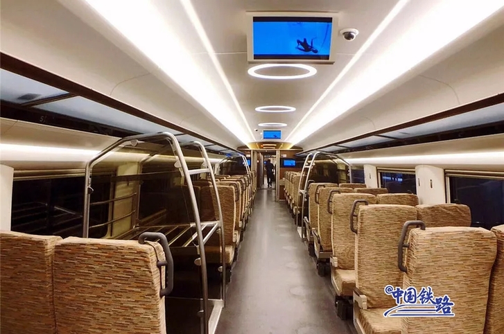 考虑到去机场的旅客携带大件行李多,中国铁路北京局集团有限公司对复兴号动车组列车的服务设施进行了升级改造,将二等车厢座椅“3+2”座位布局改为了“2+2”,通道宽度从530毫米增加到了1010毫米。