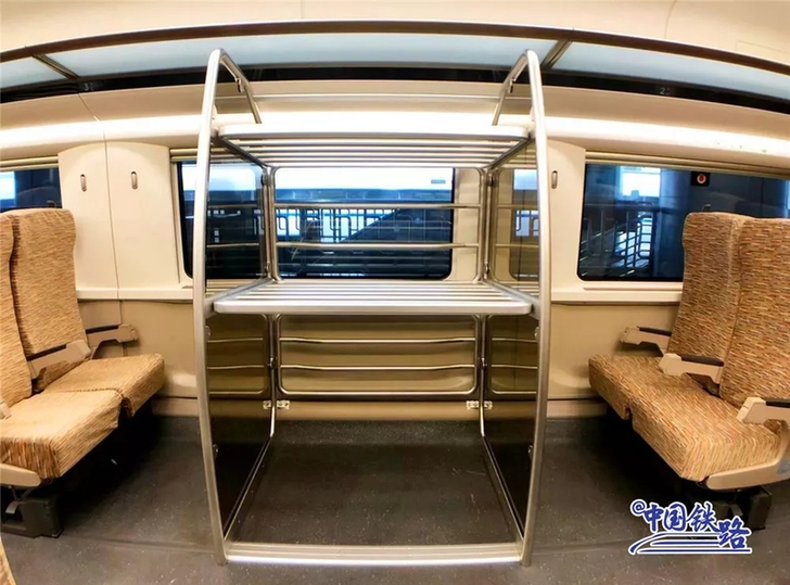 车厢内增设了多处大件行李存放处,每个可放置7个28寸行李箱,整列车共设27个行李存放处,可存放189个28寸行李箱。