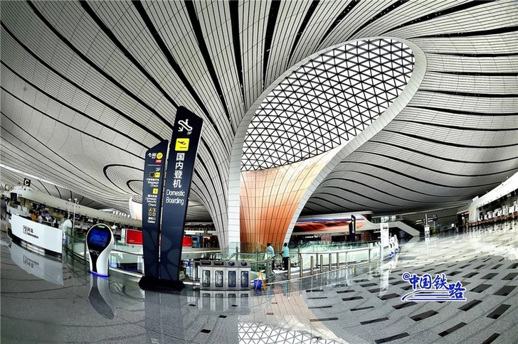 列车抵达大兴机场站后,让人有种走进地铁站的穿越之感。搭乘飞机的旅客,可从南北两个出站厅分流出站,通过换乘大厅向上进入航站楼值机,最多需要10分钟。旅客还可通过换乘大厅进入城铁站厅层,换乘城铁及公共交通。