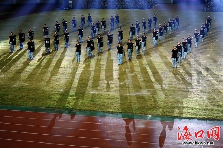 网络学院带来精彩的盾牌操表演。见习记者王程龙 摄