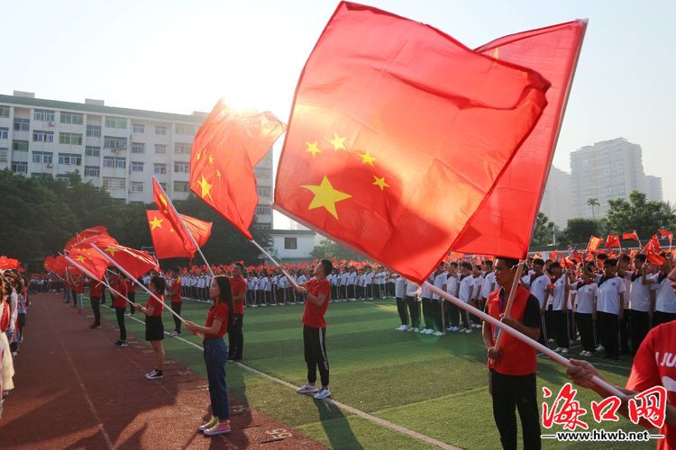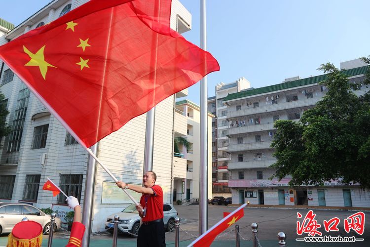 “五星红旗迎风飘扬,胜利歌声多么响亮;歌唱我们亲爱的祖国,从今走向繁荣富强……”伴着高昂的旋律,现场师生挥舞着手中的五星红旗,齐唱《歌唱祖国》,鲜艳的五星红旗汇聚成靓丽壮观的图景,海瑞学校洋溢在一片红色的海洋里。