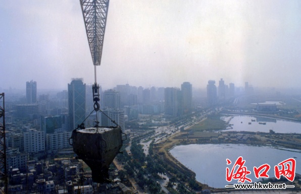 此次展览的作品之一,1994年4月,正在建设中的海口南大立交桥。