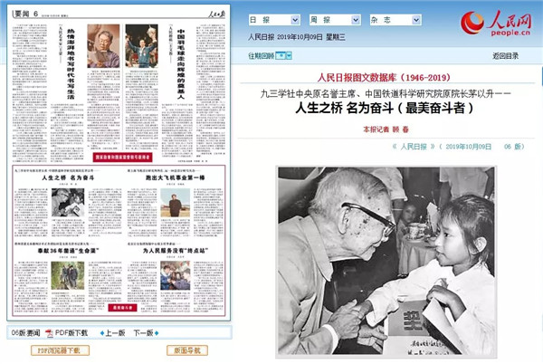 人民日报、人民网对茅以升事迹的报道