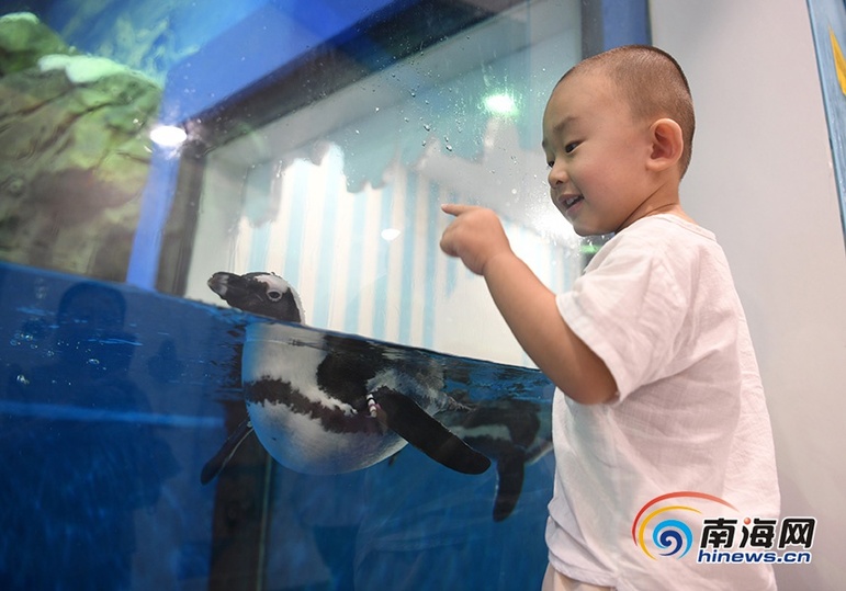 小朋友在观看斑嘴环企鹅。南海网记者 沙晓峰 摄