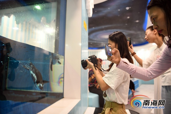 市民在拍摄斑嘴环企鹅。南海网记者 沙晓峰 摄