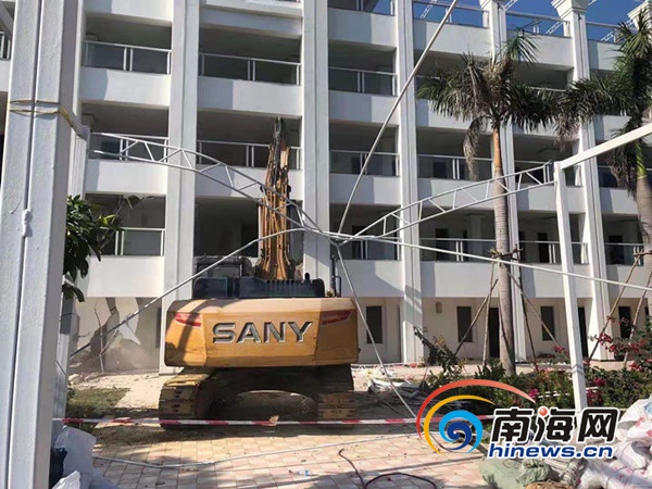 10月23日,三亚市综合行政执法局联合吉阳区政府对位于吉阳区南丁村辖区的一处建筑面积达2700平方米的违法建筑进行拆除。据悉,该栋违建只是冰山一角,经三亚各区行政综合执法部门摸底排查,已确定177宗违法建筑作为拆除对象,占地面积40916.48平方米。