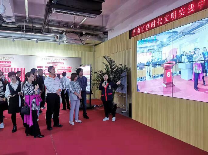 在济南新时代文明实践中心,工作人员详细介绍了济南市志愿服务的发展历程,在中心的志愿服务指挥调度中心、路演大厅、孵化区及志愿者活动中心等区域前都进行了详尽的讲解。