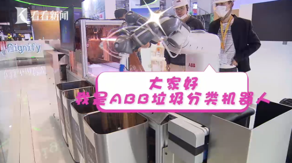 在国家会展中心4.1馆,ABB为本次进博会特意准备的拳头产品——垃圾分类机器人正在调试。上料、传送、识别、分拣……这台机器人已经适应了工作人员为它准备的各种垃圾,干、湿、可回收,分得清清楚楚。