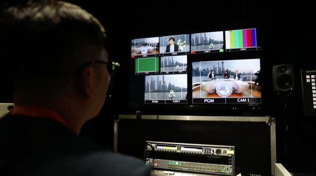 为做好进博会报道,中央广播电视总台搭建了5个高清演播室,总面积2180平米的演播区域供各频道频率和新媒体使用。