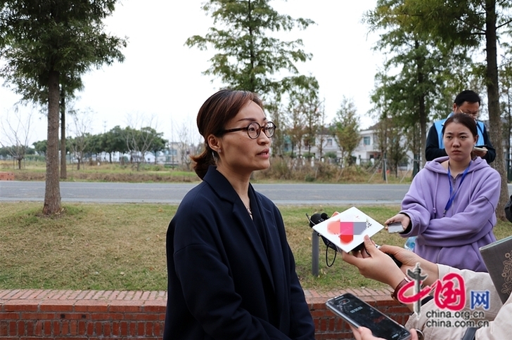 11月7日,锦溪镇党委宣传委员赵瑜接受记者采访。(中国网 王文晔 摄)