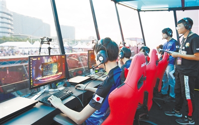 12月3日,2019WUCG三亚电竞节在三亚开幕,16国高校学生开展竞技比拼。图为中国集美大学队与日本东京工科大学队进行2019WUCG首战。