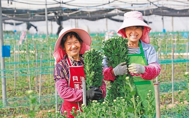 12月10日,在位于东方市马岭岛西林场西北侧的东方佳之卉农业有限公司菊花种植基地里,工人在采摘菊花。据介绍,该基地的发展带动周边村庄的贫困群众就业,他们不仅有了稳定的工资收入,通过公司定期开展的培训活动,还学到了一门种植技术。记者 陈元才 通讯员 王鸿 摄