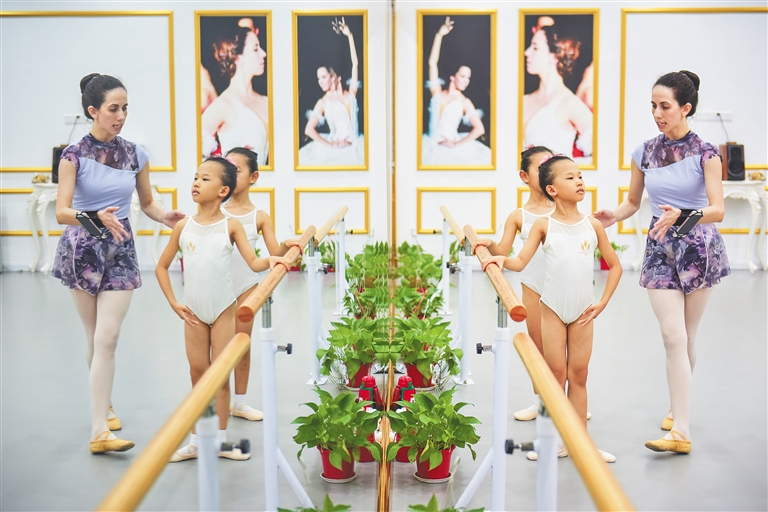 2019年9月11日,在三亚西曼卓尔艺术教育培训学校的课堂上,芭蕾舞老师吉普西用普通话,温柔地提醒小女孩跳舞时要注意的小细节。1990年出生的古巴人吉普西,嫁了个中国老公、把家安在三亚,并创办了芭蕾舞蹈培训学校。目前,学校聘请了5名外籍芭蕾舞教师,招收了200多名学生。 “创业初期,我们有离开海南北上的打算。但三亚气候宜居,在海南建设自贸区自贸港的背景下,这里国际文化氛围越来越浓烈,再加上学生家长的信任,让我们想留在这里干一番事业。”吉普西用流利的普通话说道。