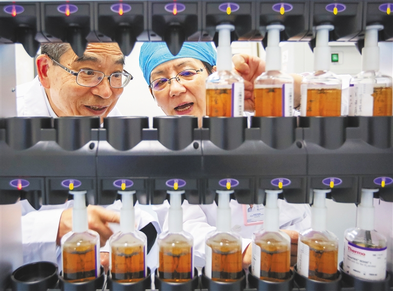 2019年4月17日,位于博鳌乐城国际医疗旅游先行区的博鳌国际医院,日籍华人凌霞博士(右)和同事一起查看实验样品。2017年12月,凌霞接到来海南工作的邀请,在此之前,她在日本学习工作生活了30余年,对海南知之甚少。“博鳌乐城国际医疗旅游先行区,聚集了国际知名专家团队,致力于前沿的医疗技术临床研究与应用。在这里工作,能够充分开展国际学术交流,这将是一个非常好的机会。”凌霞说。