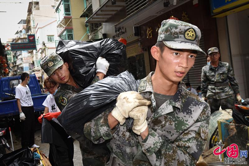 2017年8月,澳门遭遇50多年来破坏力最大台风“天鸽”的袭击。驻澳门部队出动千余名官兵紧急驰援,协助抢险救灾。据报道,这是解放军首次在港澳地区展开灾后救助行动。驻澳门部队的救助行动,感动着澳门市民。看到子弟兵清理被海水浸泡过的杂物垃圾,市民们有的拿出口罩递给官兵,有的送去食品饮料。