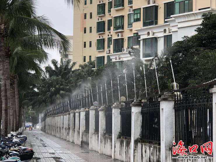 海口网12月20日消息(记者李万内 特约记者刘伟 摄影报道)小水珠从自动喷淋设施喷涌而出,将路面的扬尘一扫而光……20日下午,在位于海口南站北侧的坡博坡巷片区棚改项目现场,海口网(微信号:haikouwang2013)记者看到多台洒水车、雾炮车正在作业,自动喷淋设施不断喷出水雾。