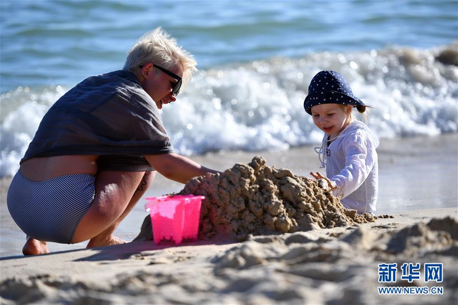 12月21日,外国游客带着孩子在三亚市大东海玩耍。 冬日的海南三亚艳阳高照、温暖如夏。世界各地的游客在这里度假休闲,享受南国宜人的气候。 新华社记者郭程摄