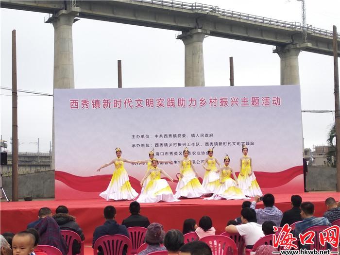 海口网12月22日消息(记者刘杰 通讯员陈创淼 摄影报道)22日上午,海口秀英区西秀镇新时代文明实践助力乡村振兴主题活动在西秀镇丰盈村委会儒宗村文化广场举行,自编自演的文艺节目热闹上演,多样化的志愿服务温暖人心,吸引不少村民到场参与。