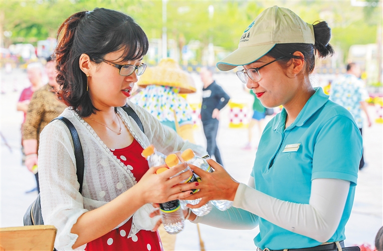 正值元旦假期,市民游客出游热情高涨,天涯海角游览区迎来客流小高峰。何培燕和同事从清晨7时许就开始了一天的工作。