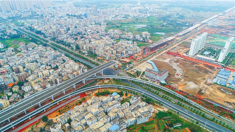 近日,高空俯瞰海口市海秀快速路二期项目。