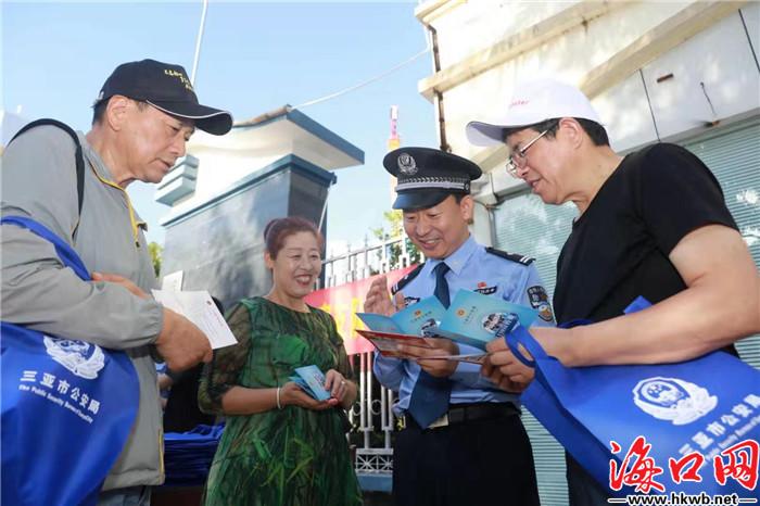 海南公安为市民派发宣传资料。(海南省公安厅供图)