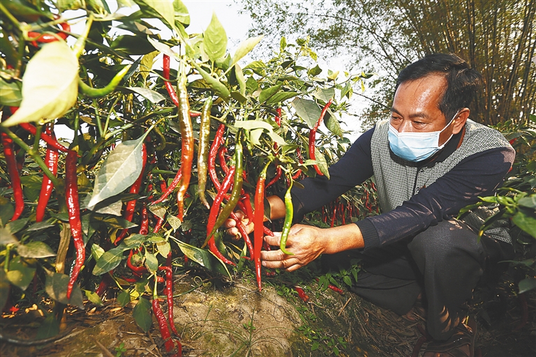 近日,在位于三亚市崖州区的海南农垦南繁产业集团有限公司的冬季瓜菜种植基地,红辣椒长势良好,海垦职工正忙着采摘。据了解,海垦南繁集团全力做好抗疫情、保生产、保畅销、保增收工作,组织员工抢抓农时,合理安排生产工作,助力职工增收和我省瓜菜市场保供稳价。