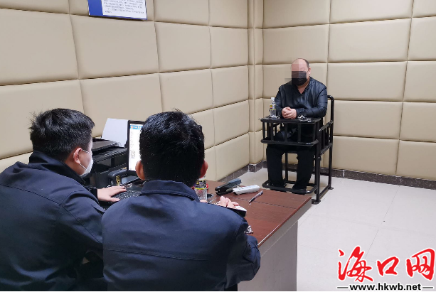 临高民警讯问非法收购犀牛制品的王某年。(海南省公安厅供图)