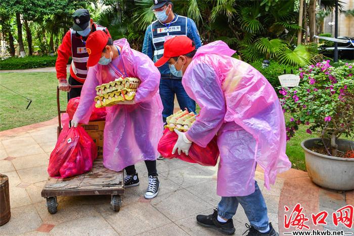 志愿者在配送物资。(琼山区供图)
