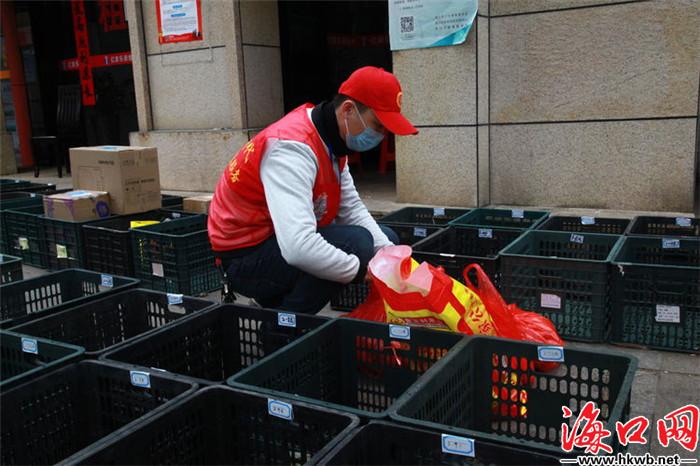 “这边是包裹分类区,麻烦您按照箩筐的序号放置好,并留下业主的联系方式。”“您这些生鲜放在这边,我们马上安排车送上去。”当天,在琼山区博桂社区江畔人家小区的大门口前,一个个黑灰色的物品放置筐整齐排列,戴着小红帽、身穿红马甲的志愿者将一个个包裹、蔬菜等物品分门别类,贴上标签放置到相应的箩筐里。