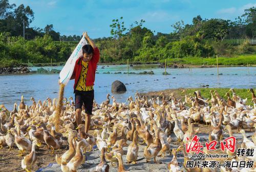 龙华区新坡镇仁里村委会卜茂村脱贫户曾令太如今成了养鸭达人。记者 苏弼坤 摄