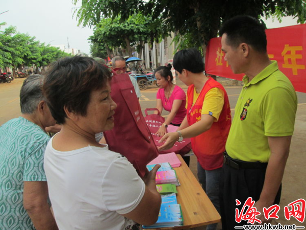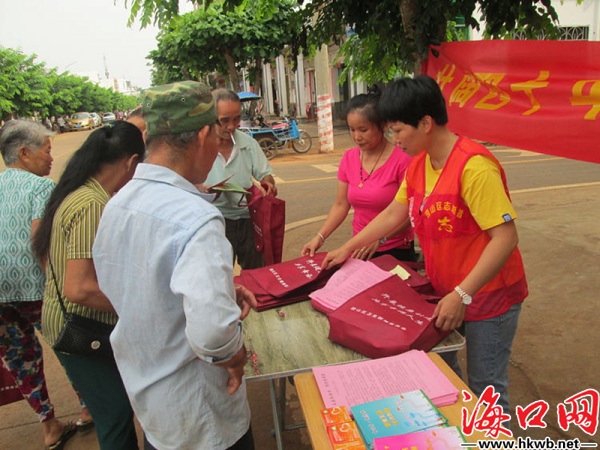 工作人员向村民发放宣传资料。(大坡镇供图)