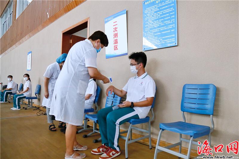考生进行二次体温检测。邵阳 摄