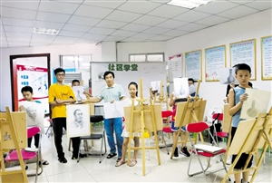 琼山文坛社区学校的孩子们在学习画画。 肖卫香 通讯员 陈欣 摄