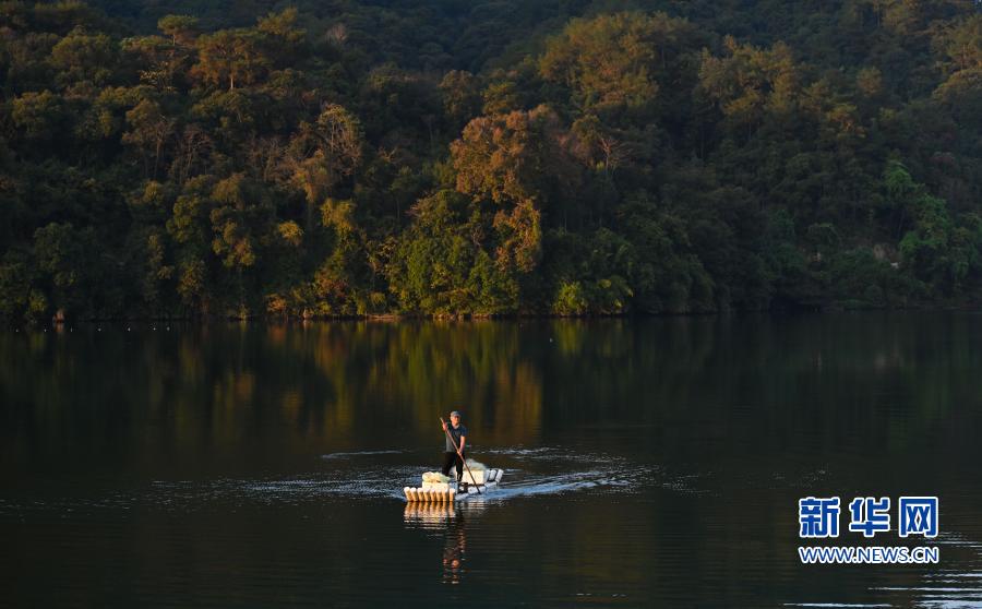 11月20日,常口村村民在村旁的金溪上划船。新华社记者 宋为伟 摄