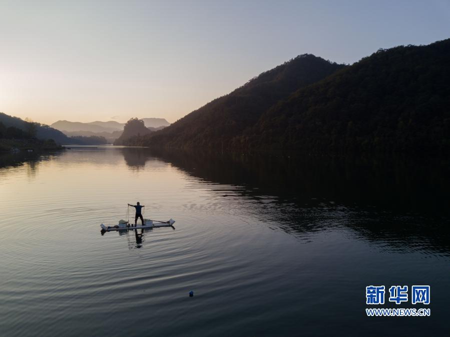11月20日,常口村村民在村旁的金溪上捕鱼(无人机照片)。新华社记者 宋为伟 摄
