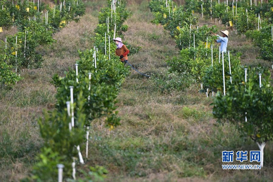 11月20日,农民在常口村的脐橙林进行日常管理。新华社记者 宋为伟 摄