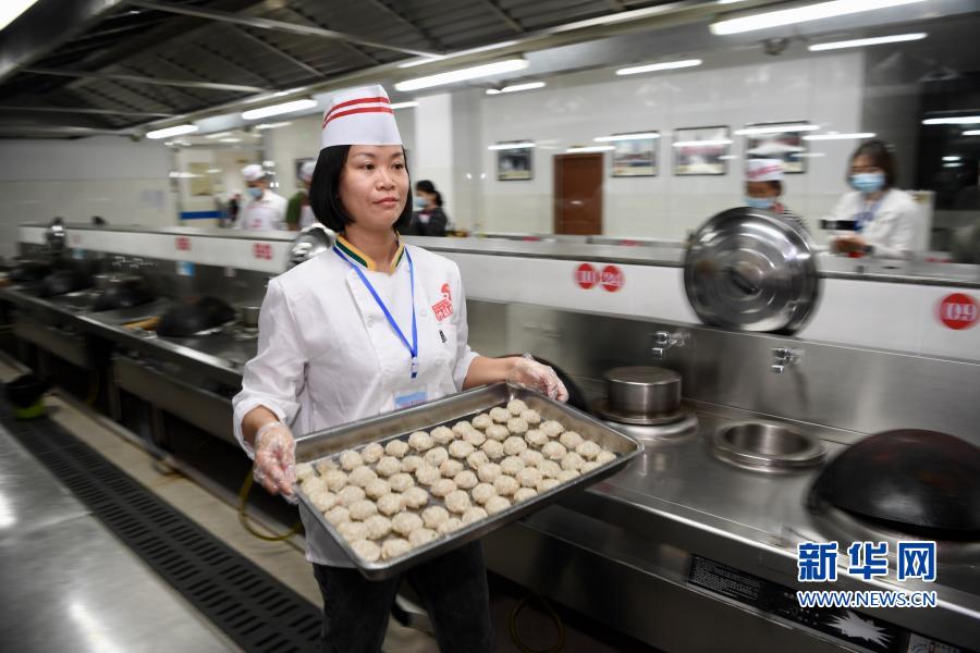 11月23日,在沙县小吃培训中心,老师(左二)在教学员制作沙县小吃。新华社记者 姜克红 摄