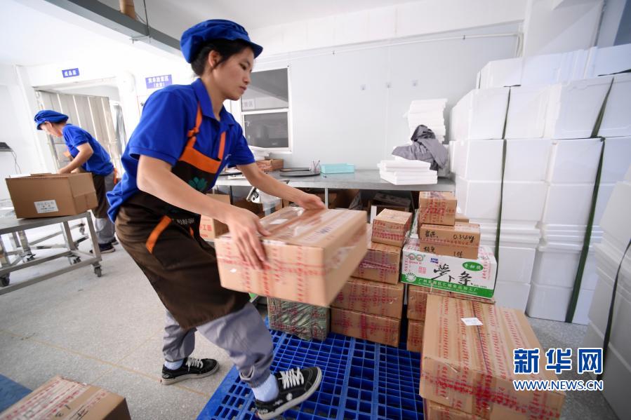 11月18日,沙县小吃产业园一家企业员工在打包快递沙县小吃产品。新华社记者 姜克红 摄