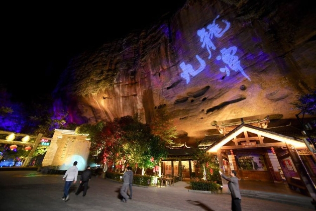 游客前往福建省泰宁县九龙潭景区体验夜游九龙潭旅游项目(11月19日摄)。新华社记者 姜克红 摄