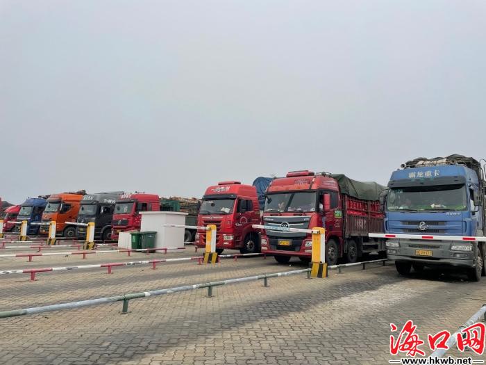 新海港内待渡车辆。卢海浪 摄