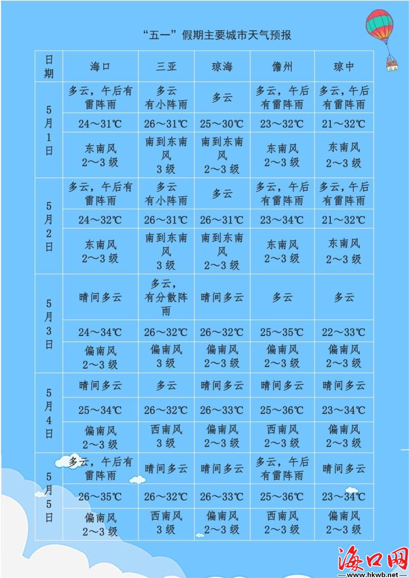 “五一”假期海南主要城市天气图解。(海南省气象服务中心供图)