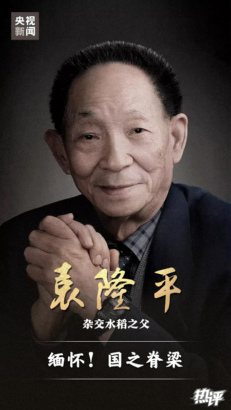 袁老说:“粮食是国计民生的头等大事,我是学农的,我应该在这方面尽我的努力。”袁老心存大爱,心念苍生,用一粒种子,改变了整个世界,“为我国粮食安全、农业科学发展和世界粮食供给作出杰出贡献”。致谢袁老,致敬袁老,因为有了袁老的科研成果,中国人才能把饭碗端得更加牢固。