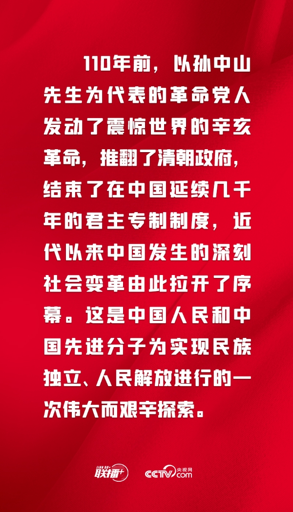 总书记在讲话中高度评价了辛亥革命的历史功绩和重大意义,回顾总结了中国共产党继承孙中山先生革命事业、团结带领人民不懈奋斗的光辉历程,深刻阐述了辛亥革命110年来的历史启示,郑重宣示了坚持一个中国原则和“九二共识”、坚决遏制“台独”分裂活动、捍卫国家主权和领土完整的坚强决心与坚定意志。