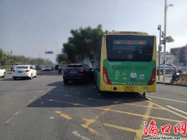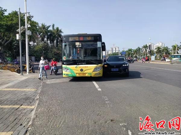 公交车与汽车发生剐蹭。(海口公交集团供图)