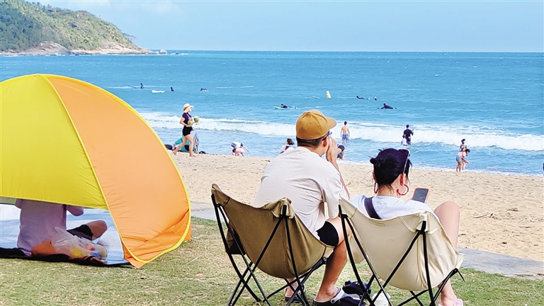 “今年春节旅游旺季确实比往年来得早。”万宁市体育运动中心主任李光荣表示,近年来万宁持续加大日月湾建设,大力发展冲浪产业,冲浪运动名声在外,“现在正是寒假期间,很多学生都来日月湾体验冲浪,加之近段时间气温回升适宜出游,所以这段时间游客比较多。”他说。